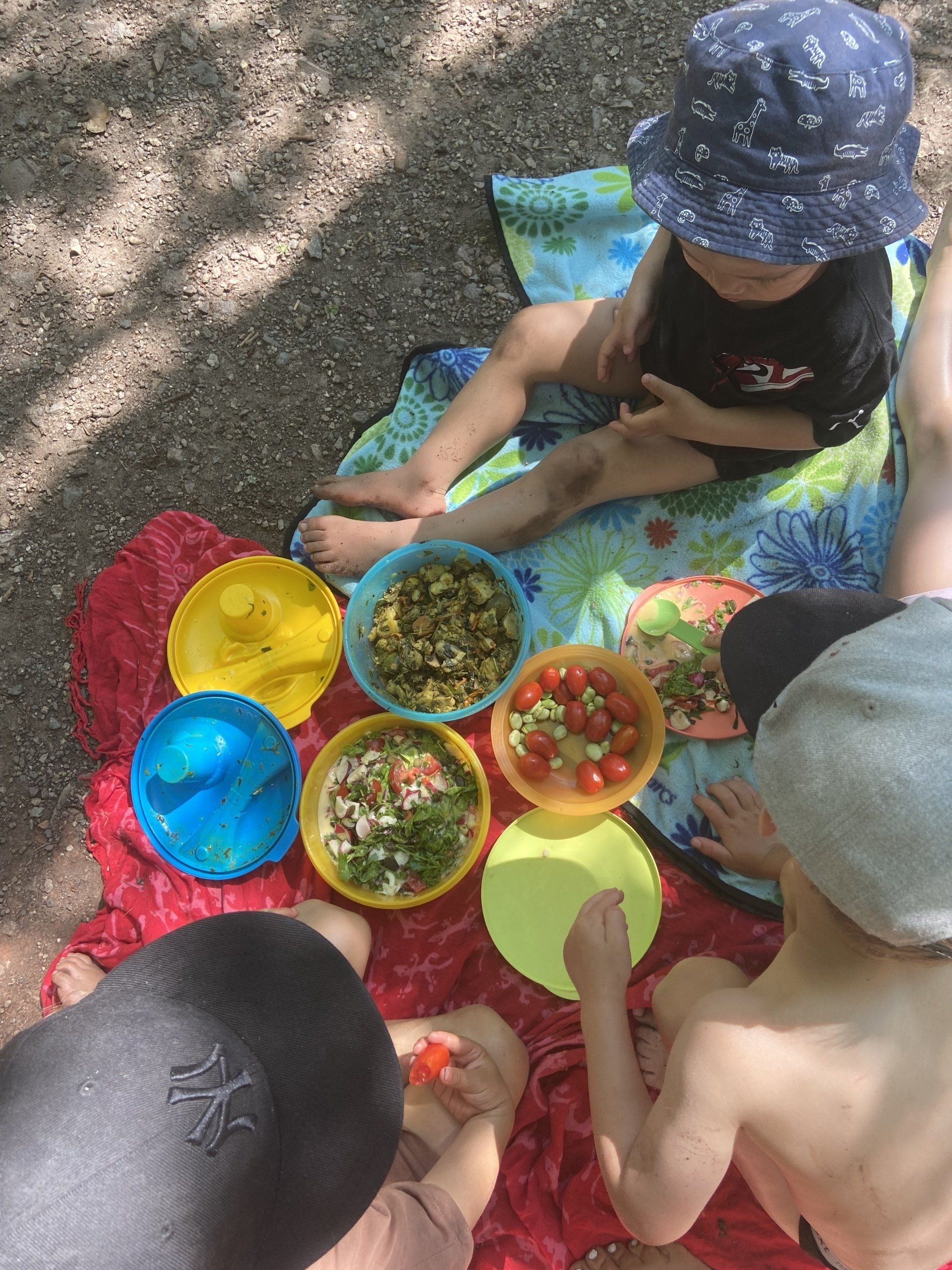 Wir starten nach dem Ankommen mit einem Morgenkreis in dem wir singen und Geschichten erzählen, anschließend Frühstücken wir zusammen (Rohkost steht den Kindern immer bereit). Danach können die Kinder frei spielen / bei einem Kreativangebot wie z.B. basteln teilnehmen / oder wir gehen